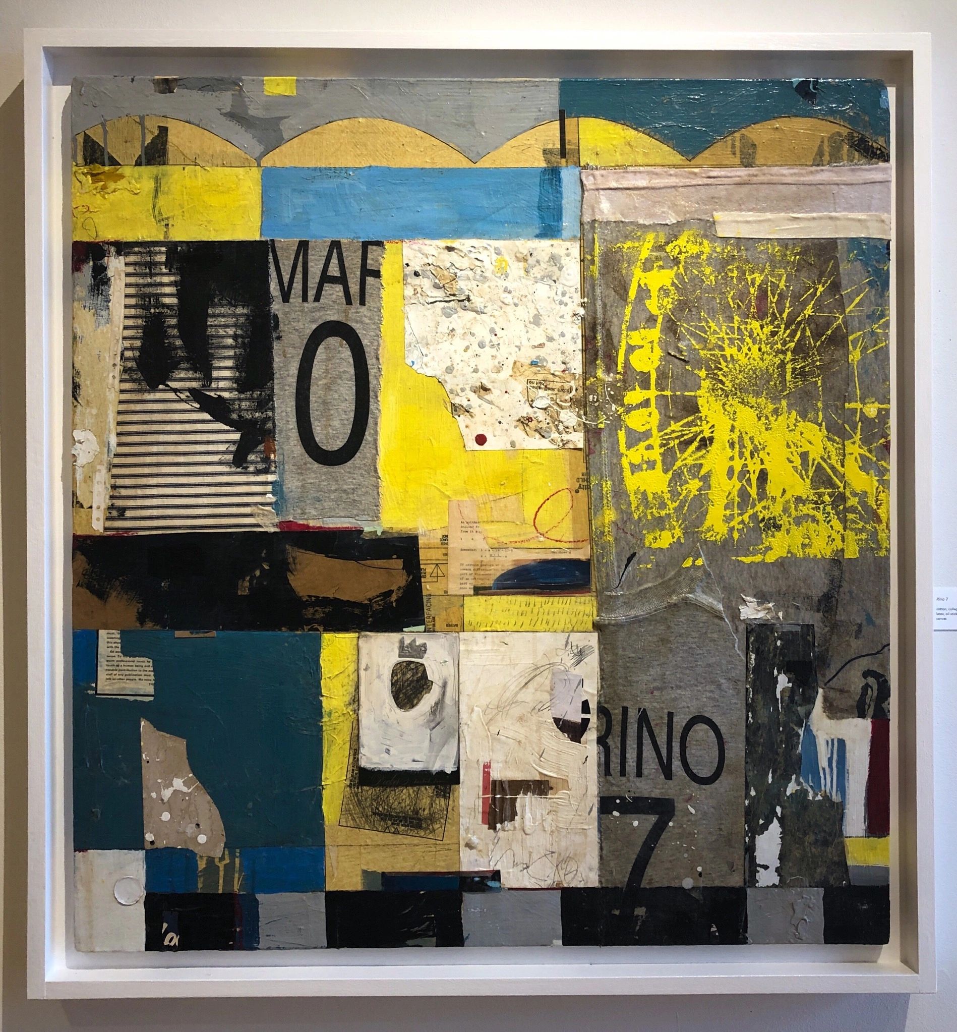 Jeffrey Bohlander won an award of merit for “Man of the Year” (2019), a mixed media on canvas work involving collaged t-shirts and a silkscreen print.